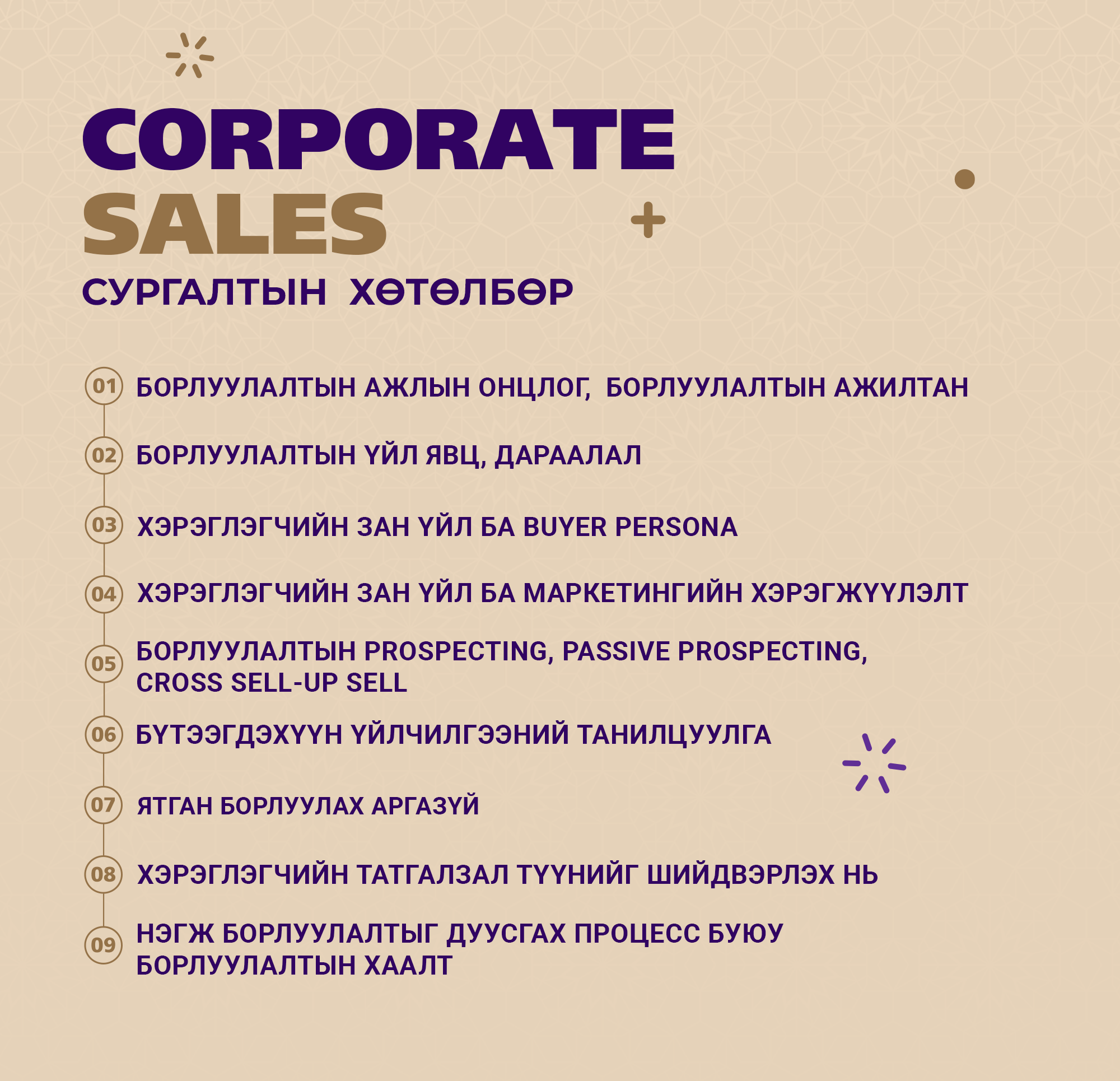 БОРЛУУЛАЛТЫН УР ЧАДВАР НЭМЭГДҮҮЛЭХ "CORPORATE SALES" СУРГАЛТ