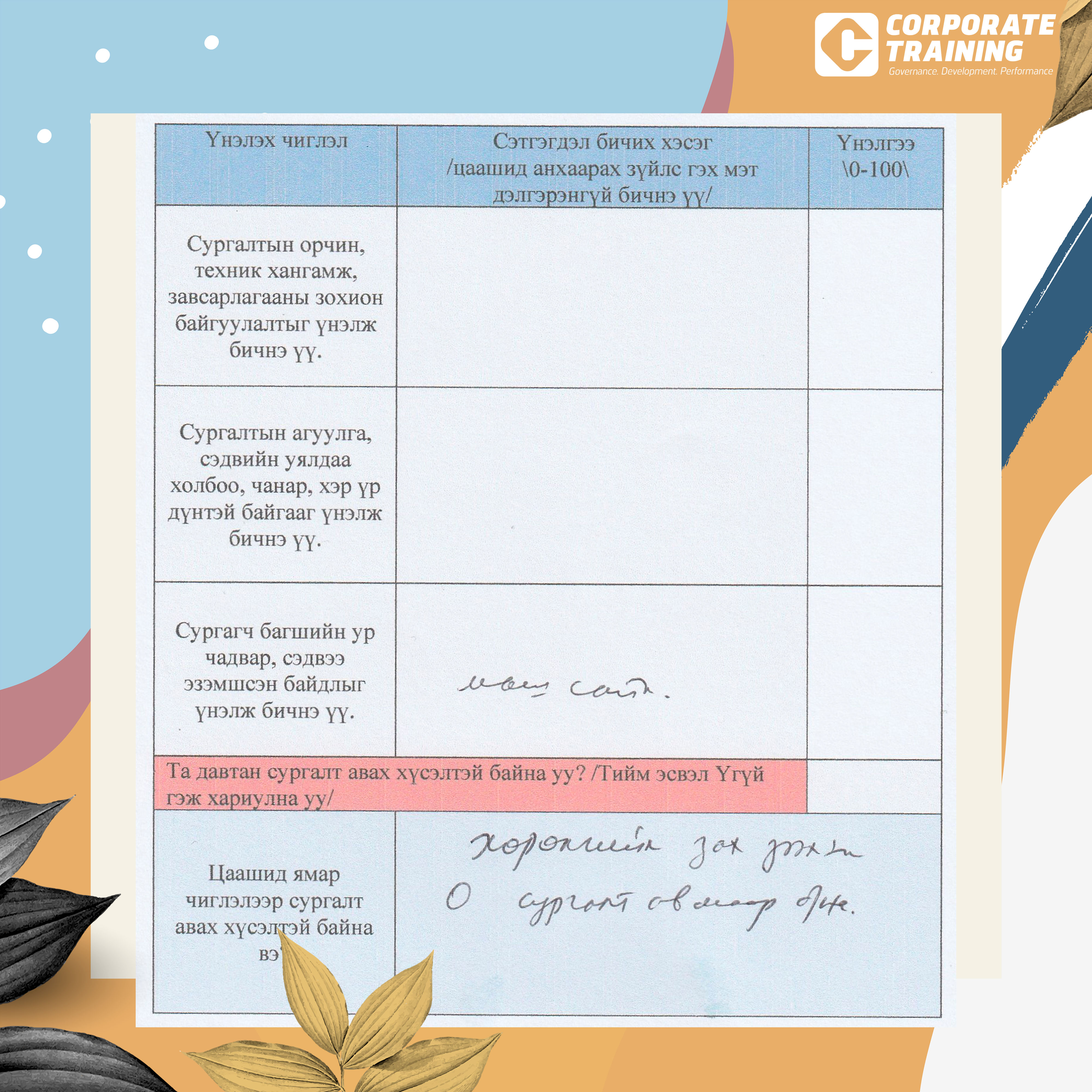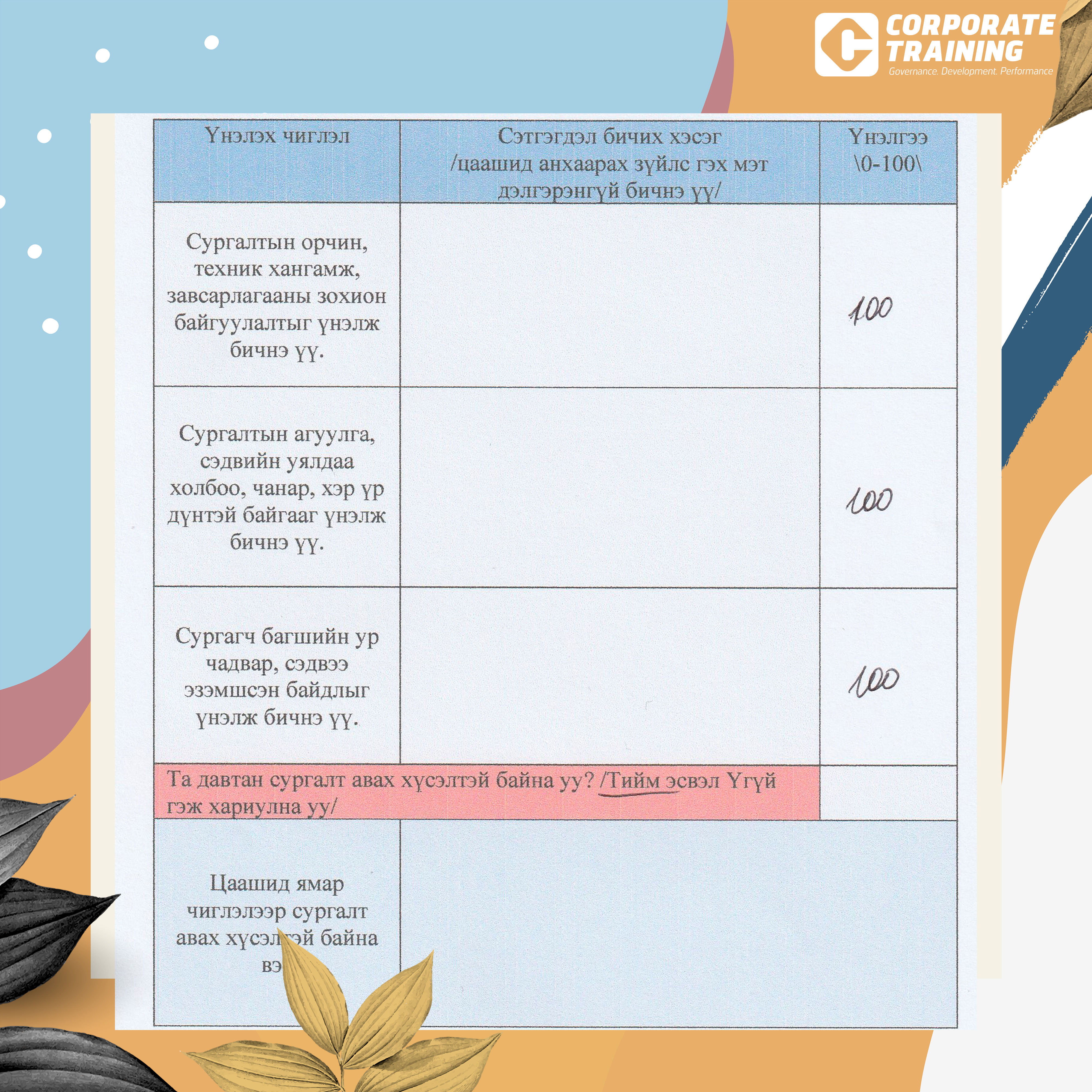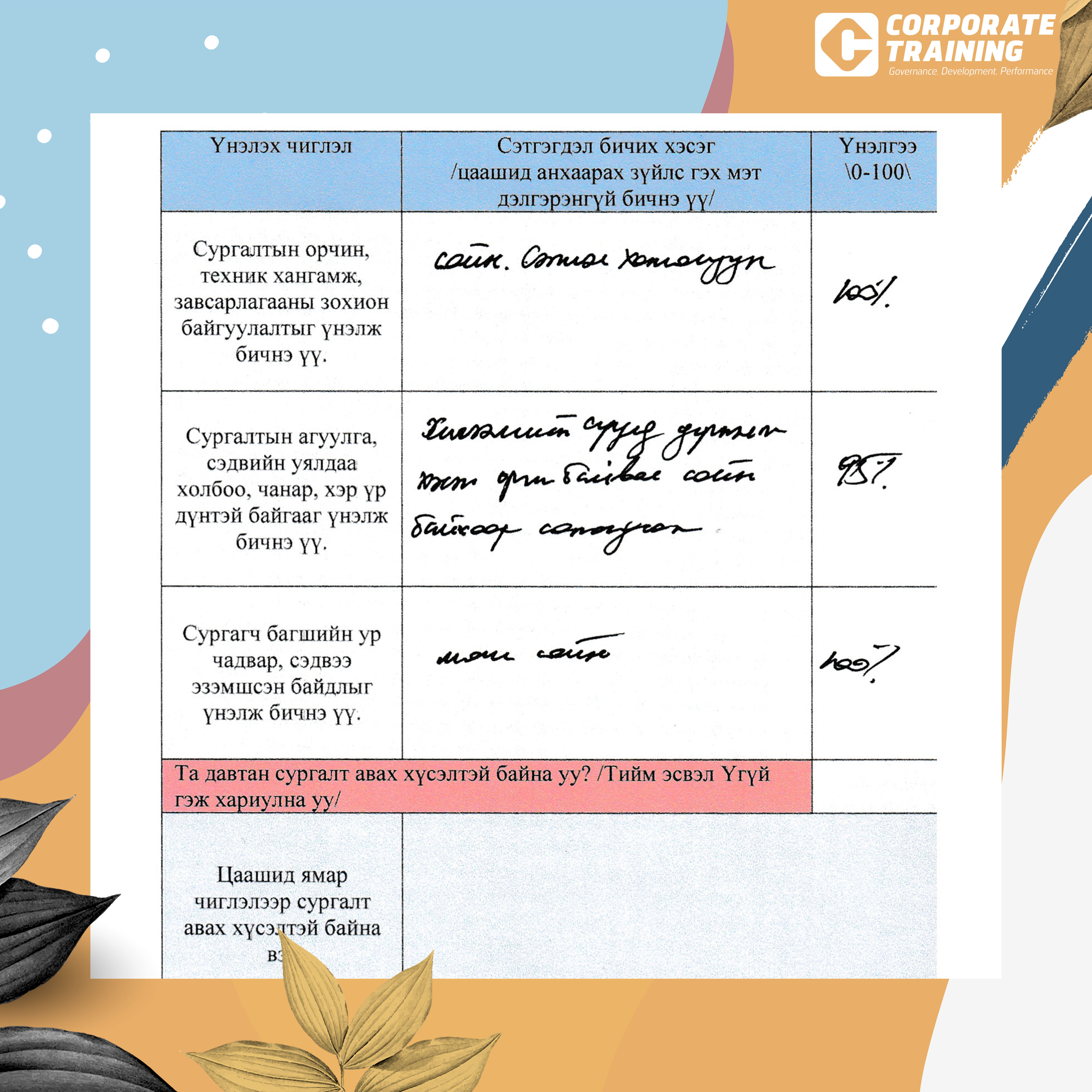 Алсын хараа үнэт зүйлсдээ тулгуурласан урт хугацааны #CEO #PLUS - ЗАХИРЛУУДАД ЗОРИУЛСАН СУРГАЛТ 7 өдрийн 21 цагийн хөтөлбөрөөр 2025 оны 09 сарын 22-ноос 2025оны 09 сарын 30-ны өдрүүдэд Онол+Практик хослосон богино хугацааны сургалт зохион байгуулагдлаа.